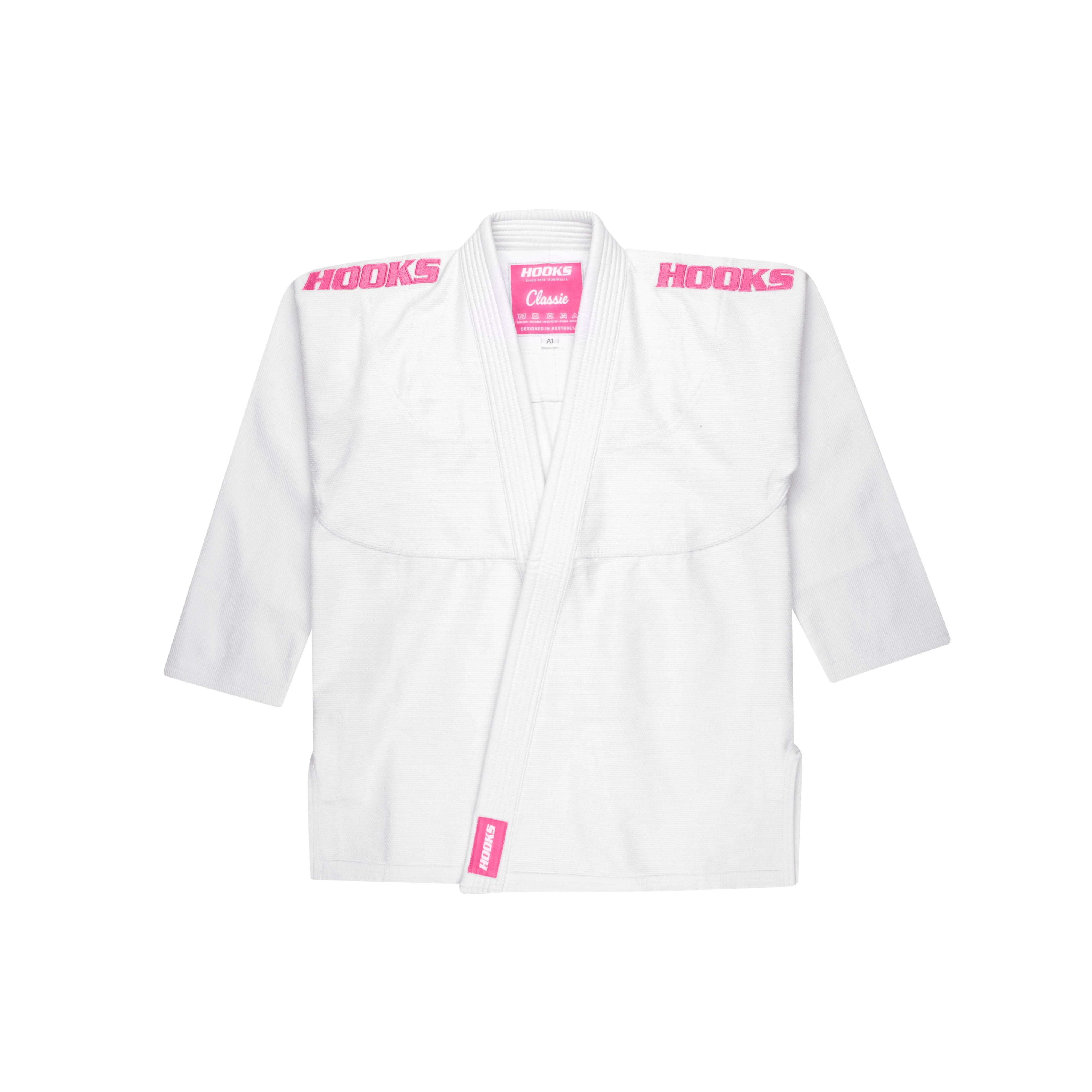 Hooks Kids Classic BJJ Gi - White & Pink includes White Belt